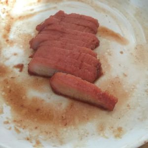 猪肉(猪肉部位买俗称老鼠肉哪块脆爽)要晾干水,我心急只是挤干,三茶匙叉烧酱,一茶匙料酒,一茶匙蜂蜜,蒜少许,姜少许,葱(可以不要),腌制若干小时,这个根据肉的厚度定,然后烤!上下火200,烤20分钟,再反面20分左右,具体时间,按烤箱实际情况定,出炉前上蜂蜜烤三几分钟,卖相会好些,我偷懒没做这一步!也可用平底锅来焖加煎,搞定[呲牙]