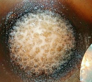 锅里加冷水烧开,倒入蜂蜜大火熬制,开后,稍小火继续熬干水分。随时关注搅拌不要烧焦,整个熬制过程大概25到30分钟(水干测试方法是用一个小碗装冷水,用筷子蘸蜂蜜滴入冷水,立即结晶。)