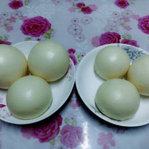 从盆中取出面团,多揉一会儿,这样比较有劲道,揉成馒头的形状,锅稍微热些,放入揉好的馒头,盖上锅盖,大概半小时,就蒸好了