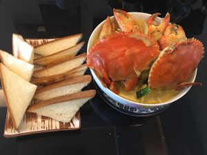 再用土司机烘几片方包,剪成小块,脆脆的面包醮着咖喱汁吃小朋友也很喜欢。一道咖喱面包蟹绝对让人食欲大开。