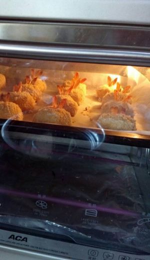 放进预热好的烤箱,180度20分钟左右虾球烤至上色即可