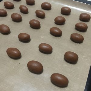 成型/摆盘。用刮片在椭圆形中间切一个小口,力度不要太大,以免饼干被切开。