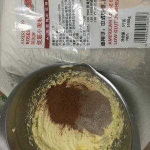 将可可粉、咖啡粉、低粉倒入,揉成团状