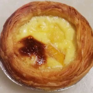 蛋挞液过筛,然后倒入蛋挞皮(网购现成的,提前从冰箱拿出来解冻好),八九分满,再放入喜欢的水果(芒果,菠萝,葡萄干……)就好了。