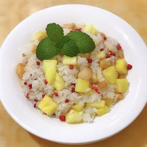 糯米蒸熟后倒入容器趁热加入适量的猪油和白糖,翻拌均匀融化猪油和白糖