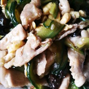 油热后下葱花爆香,下肉片料酒炒散,放入黄瓜木耳,半勺盐,一勺蚝油,一勺生抽,少许糖,炒匀后放入炒好的鸡蛋碎,淋上香油,蒜末和水淀粉即可出锅。那叫一个香!