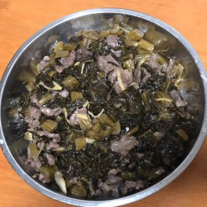 姜丝炒牛肉再把酸菜放进去一起炒。(牛肉不要炒太久,变色了就把酸菜放进去再炒三分钟)。