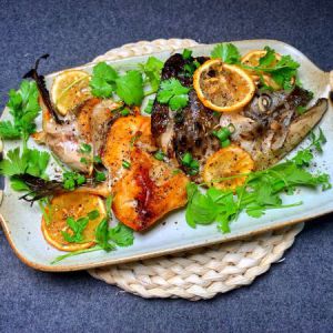 烤箱200度,25分钟。撒一把香菜。中间翻面。