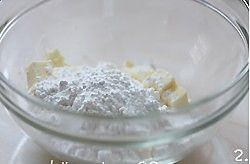 奶酥原料:黄油50克,全蛋13克,盐少许,糖粉25克,奶粉60克