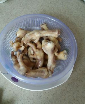 之前洗好的鸡爪凉水入锅,煮开后捞起来备用