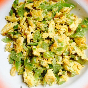 锅热后,放入一点点油!不要多!然后倒入苦瓜蛋液均匀摊平,小火翻炒,快熟时加点蚝油和一点盐,然后出锅