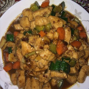 热锅放油炒鸡胸脯肉,炒到快熟时盛出。热锅加入调好的汤汁,放入胡萝卜、豆瓣酱炒红,加入鸡胸脯肉翻炒,最后加入黄瓜、大葱翻炒出锅即可。