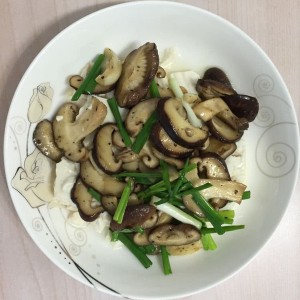锅烧热放油,葱姜蒜炒香,放入香菇 在放入盐 鸡精 黑胡椒 酱油 ,大火炒熟 最后放入香葱 盛到豆腐上 结束了。