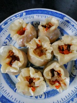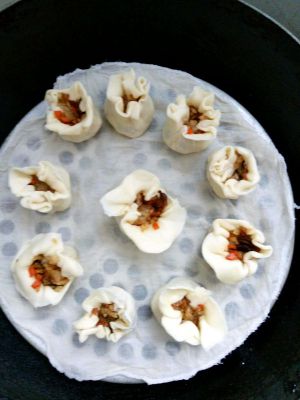 包上馅子用虎口捏拢,另一只手大拇指帮着把馅料按实些