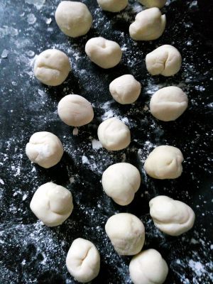 把烫好的面捏成小面团擀成中间稍后四周薄的皮子