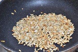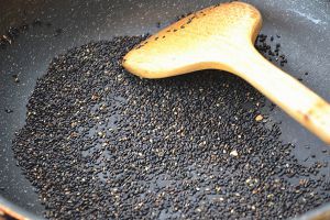 黑芝麻炒熟即可,花生在锅中炸熟即可。