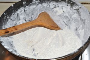 转化糖浆70g,花生油25g,碱水1g倒入盆里搅拌均匀。
