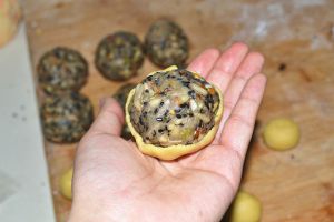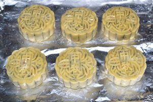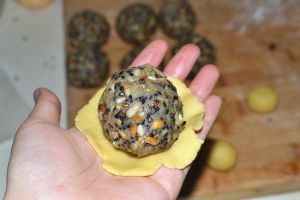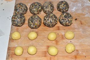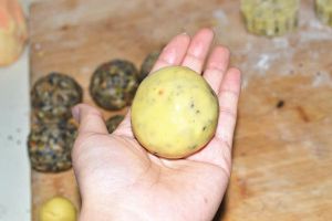 五仁一个为57g揉成团,皮一个为18g揉成团。