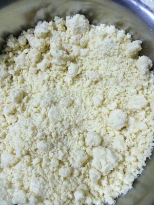 筛入低筋面粉和玉米淀粉的混合物,用手揉成面团。