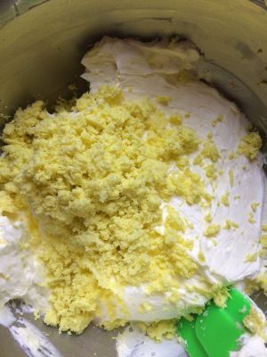 筛入蛋黄,搅拌均匀。