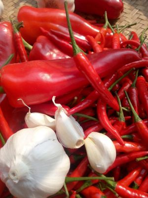 选择好的甜椒,朝天椒和大蒜