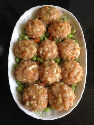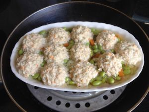 冷水上锅放入肉圆,大火烧开,转中小火蒸12-15分钟;