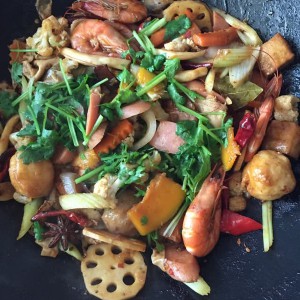 再放入干辣椒 黄豆酱 郫县豆瓣酱 炒出红油 香味