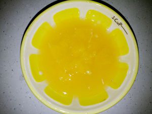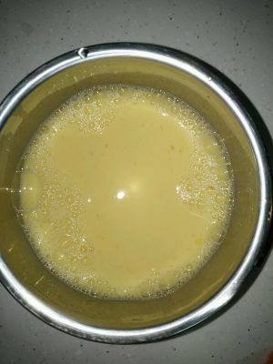 鸡蛋打匀加入少许牛奶,少许橙汁,蜂蜜水搅匀