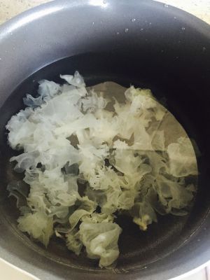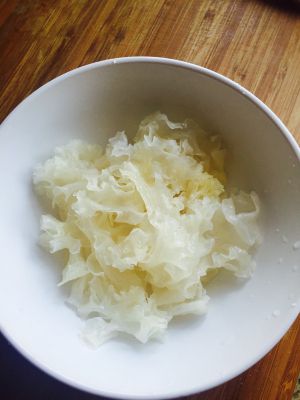银耳用凉水泡发。剪掉尾蒂。剪成适当大小。