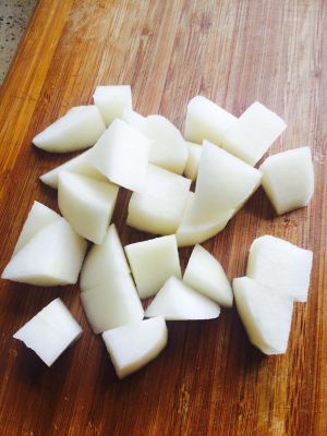 先放入银耳。大火烧开后放入雪梨。红糖。再次烧开后转小火慢炖。炖一个小时左右。放入蔓越莓。在炖10分钟左右就可以了。