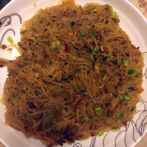 将一把粉丝用温开水泡发(记得至少泡30分钟)泡软,忘记拍照了。。凑合看吧