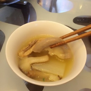 家里还有几个香菇~~我也放进去了,熬到一半的时间就闻到香味了,跟粤味的汤完全不一样的感觉~