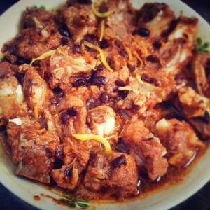 把配料倒入排骨上加上生粉拌匀,再倒入料酒