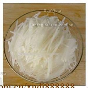 将萝卜洗净去皮切成细丝,也可以用刨丝器刨成丝。