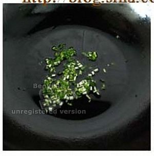 锅里放入植物油,烧至5成热关火,放入葱花爆香