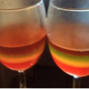 凝固后再在上面倒一层QQ糖溶液,继续冷藏,以此类推