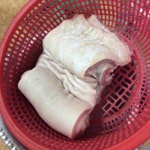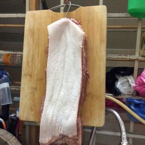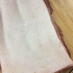 刮好的猪皮表面没有水份,用手触摸会感觉黏黏的