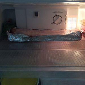 放入冰箱冷藏3天,这是为了去掉猪皮的水份,所以只要把边边包起来