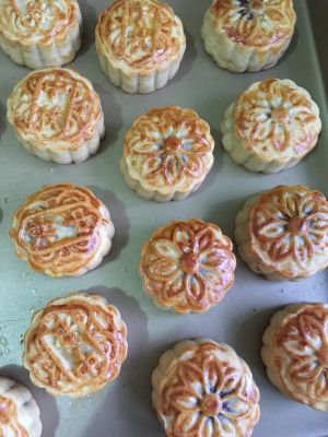 这是做好的各种口味的月饼哦,有莲蓉咸蛋黄,有红豆咸蛋黄,有绿豆的,奶黄馅的(*^▽^*)