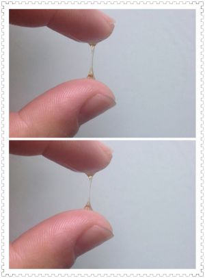 这是熬到火候后,用筷子点一些在上面,等冷却后用手在手指上粘拿会有拉丝的效果。