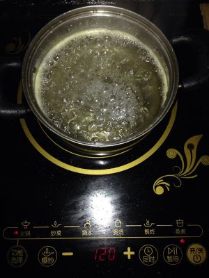 放置电磁炉或者电陶炉加热至水沸,这时候就可以倒入柠檬汁,煮到水再次微沸,转最小火慢慢开始熬。从这刻起就不能再搅动锅了。