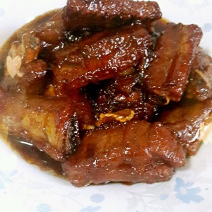 盖锅盖,中小火,炖30分钟左右(中间我是看了三四次,搅动了一下防止火太大糊锅),打开锅盖,开大火收汁(收汁前可以尝一下排骨的味道,如果不咸可以再加盐),收完以后就可以出锅啦,老公说味道不错呢!