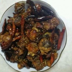 油烧开,放入干红辣椒,麻椒,爆炒出香味,放入鸡腿肉爆炒,,炒一会放入酱油,耗油,盐,再炒。(鸡肉很乐意熟,我比较喜欢火大点的,所以炒的比较久一些)