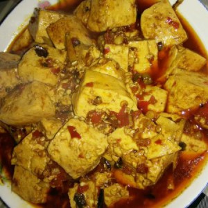 加入清水后。把切好的豆腐快入锅,再加一勺自制辣椒沫,没有不放也可以。白糖,盐。