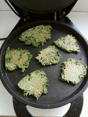 电饼铛中加入微量的油,加热。将茴香面糊倒入电饼铛中。