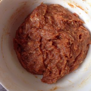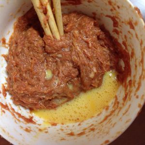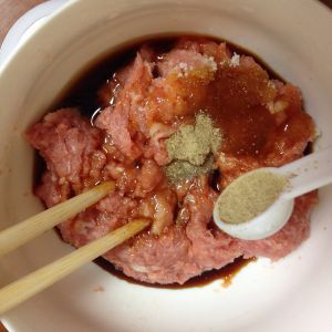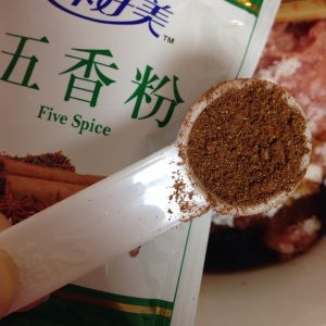另一半肉糜加入1/2勺五香粉,其它配料相同