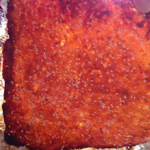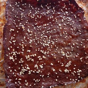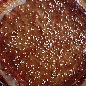 翻面,刷蜂蜜水,撒白芝麻,再烤10分钟。
