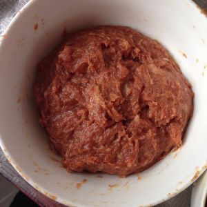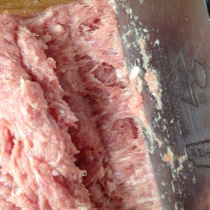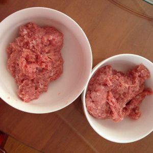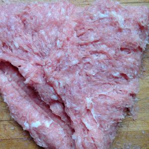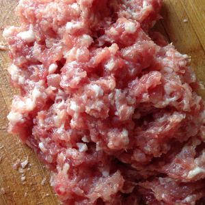 猪肉,最好瘦一点,我用的是猪后腿肉。洗净用料理机打成肉糜。