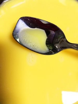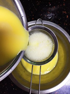 加水后继续打,打个3分钟,用筛子筛掉泡泡,多筛几次,泡泡会更少,蛋也会更滑嫩。