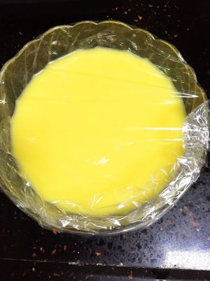 用保鲜膜包好,用牙签戳三个洞,可以上锅蒸了,大火开后,转小火10-15分钟。